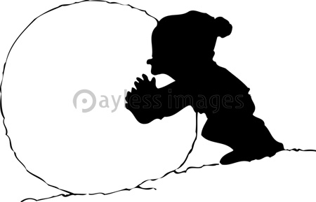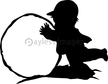 雪だるま作りをしている人のシルエット イメージマート